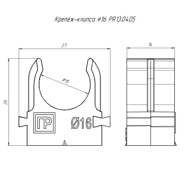 Черная атмосферостойкая клипса для монтажа труб диаметром 16 мм PR13.0405