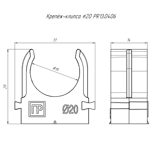 Черная атмосферостойкая клипса для монтажа труб диаметром 20 мм PR13.0406