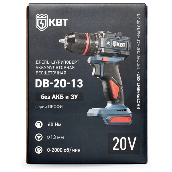 Аккумуляторная бесщеточная дрель DB-20-13 с быстрозажимным патроном до 13 мм без аккумуляторной батареи 104534