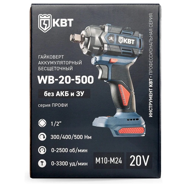 Аккумуляторный бесщеточный гайковерт WB-20-500 с квадратом 1/2 дюйма без аккумуляторной батареи 104536