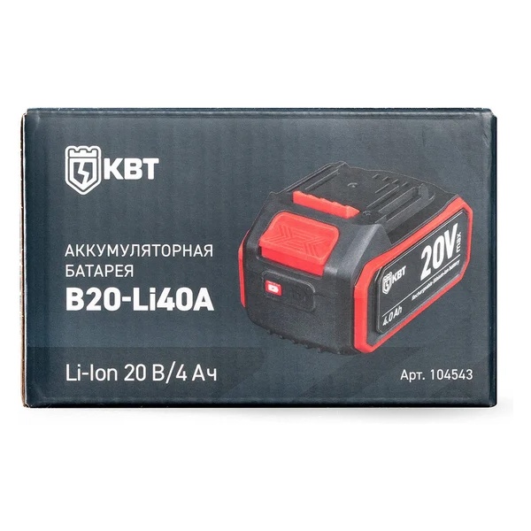 Литий-ионный аккумулятор 20 Вольт 4Ач, слайдерного типа в пластиковом корпусе для аккумуляторного инструмента КВТ 104543