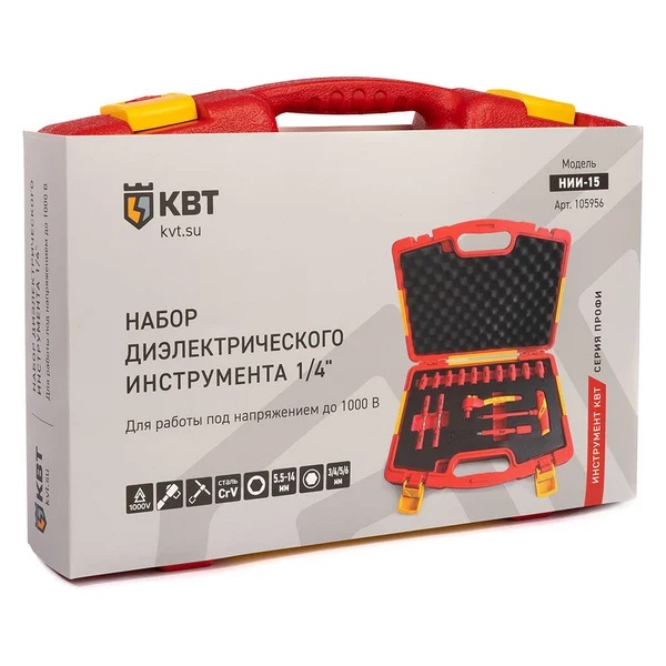 105956 Набор диэлектрического инструмента КВТ НИИ-15 с трещоткой для работ под напряжением до 1000 В VDE