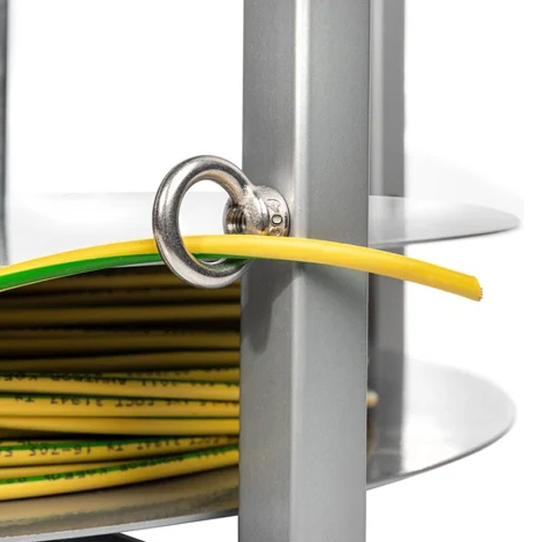Оно обеспечивает плавное и равномерное вращение бухты, исключает её перекручивание и спутывание, повышает скорость и безопасность работы, а также снижает риск повреждения материала. Дополнительно конструкция позволяет эффективно организовать рабочее пространство, облегчает доступ к расходным материалам и способствует более точной и стабильной подаче кабеля при монтаже или производственных операциях.