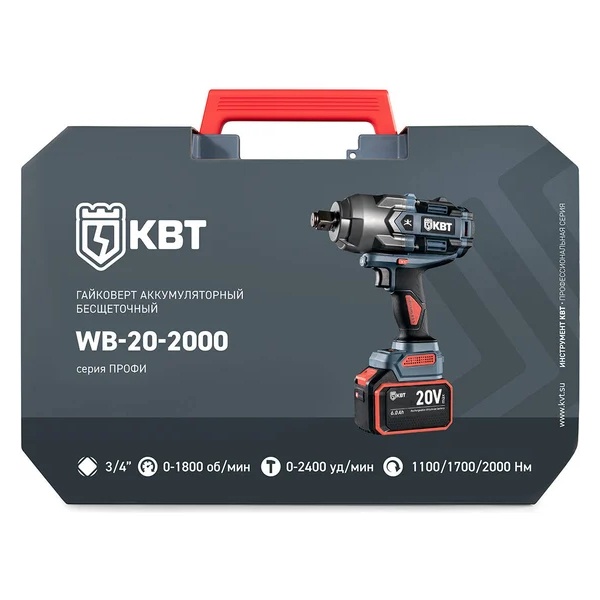 Гайковерт аккумуляторный КВТ WB - это высокоэффективный и надежный инструмент для завинчивания и отвинчивания крепежа, предназначенный как для профессионального, так и для бытового использования.