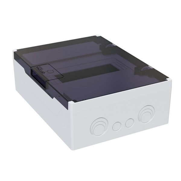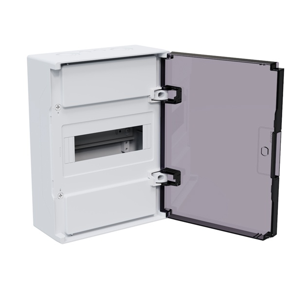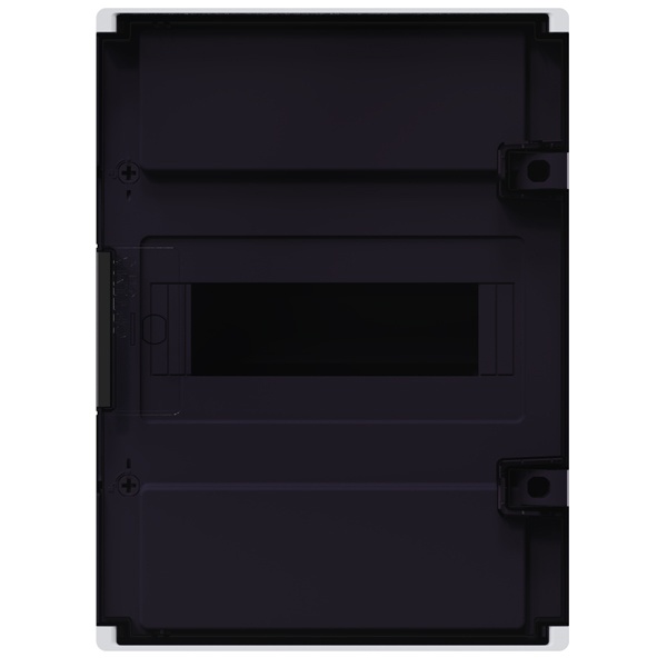 Накладной пластиковый однорядный распределительный шкаф 8 модулей с черной дверью 379783