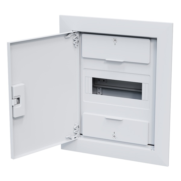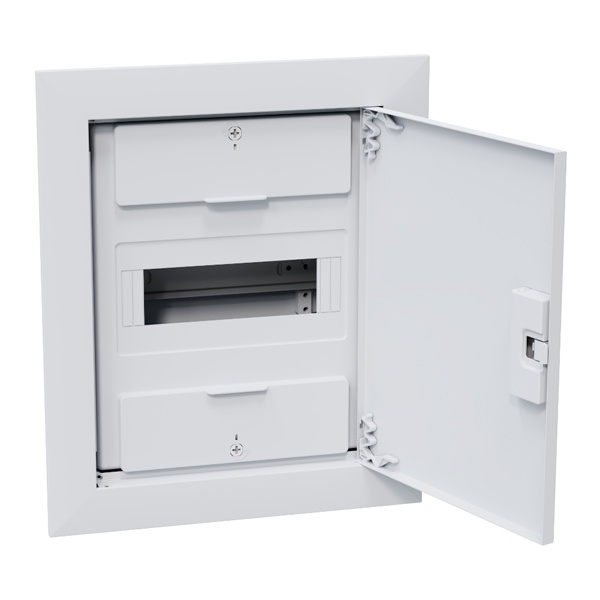 Пластиковый однорядный распределительный шкаф 8 модулей скрытой установки с белой дверью 379784