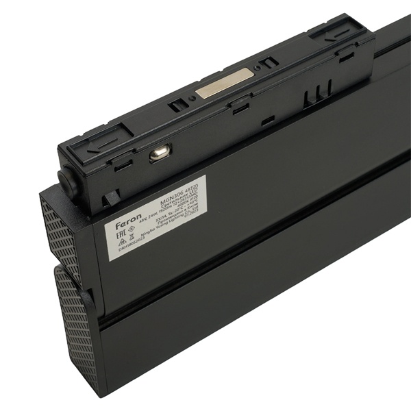 Поворотный черный светодиодный трековый светильник 48В Ферон мощностью 24Вт для магнитной трековой системы, нейтральный белый свет с углом рассеивания 30 градусов 48720