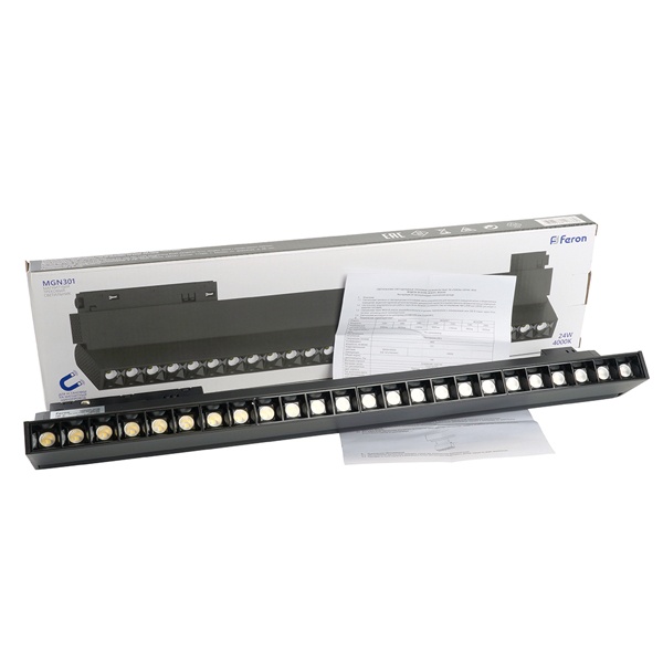 Светильник светодиодный трековый низковольтный Feron MGN301 24W 4000K 2160Lm 30 градусов, черный 48720