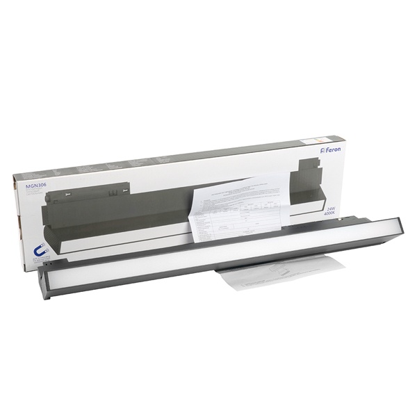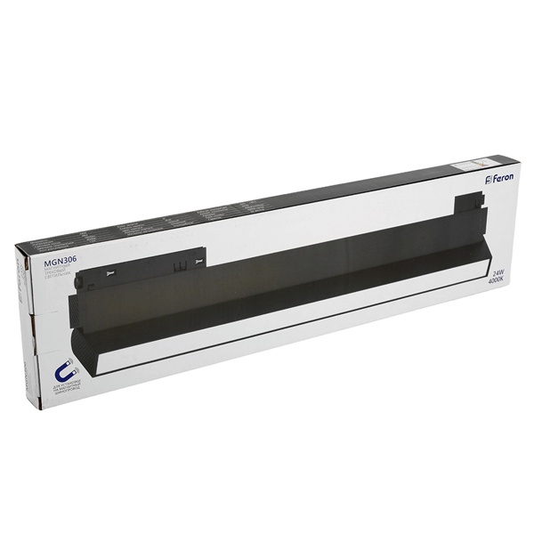 Поворотный черный светодиодный трековый светильник 48В Ферон мощностью 24Вт для магнитной трековой системы, нейтральный белый свет с углом рассеивания 110 градусов 48721