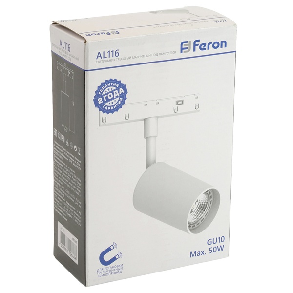 Трековые светильники AL116 от Feron предназначены для использования с лампами формата MR16 с цоколем GU10, что обеспечивает широкий выбор источников света с различной цветовой температурой и мощностью.