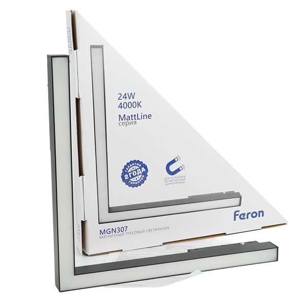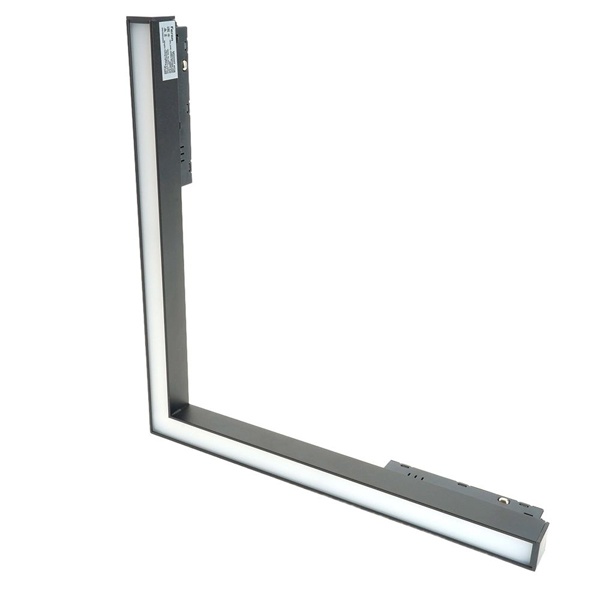Черный угловой светодиодный трековый светильник 48В Ферон мощностью 24Вт для магнитной трековой системы, нейтральный белый свет с углом рассеивания 110 градусов 48728