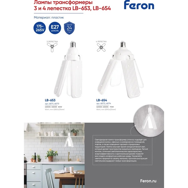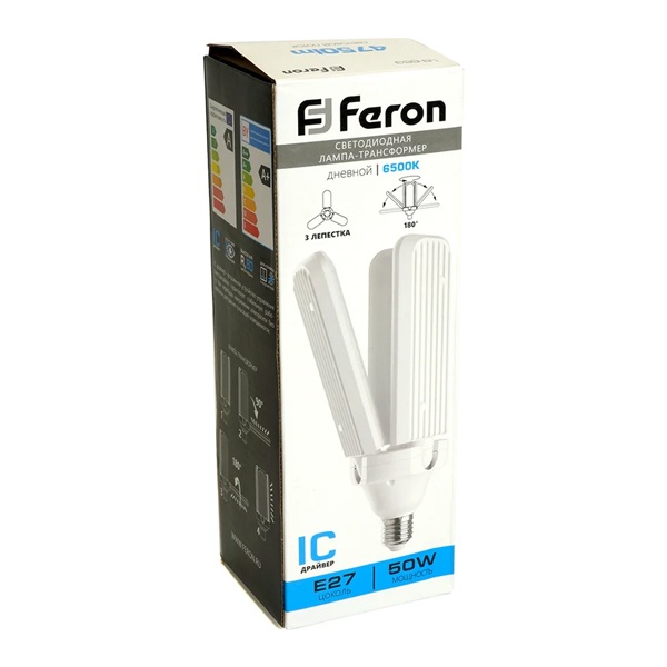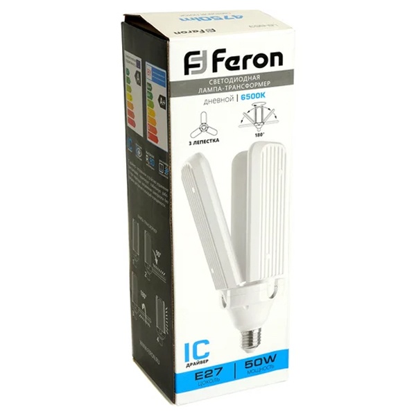 Клеверная LED лампа-трансформер Ферон на 3 лепестка, мощностью 50 Ватт, холодный дневной свет 48772