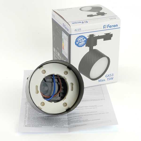 Трековый светильник Ферон AL125, для ламп GX53, максимальной мощностью 15 Вт, черный цвет 48777