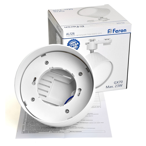 Трековый светильник Ферон AL126, для ламп GX70, максимальной мощностью 23 Вт, белый цвет 48778