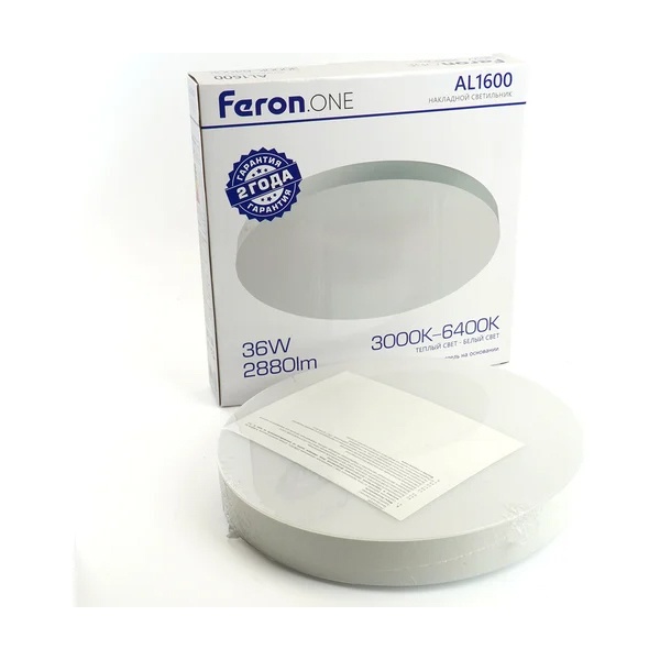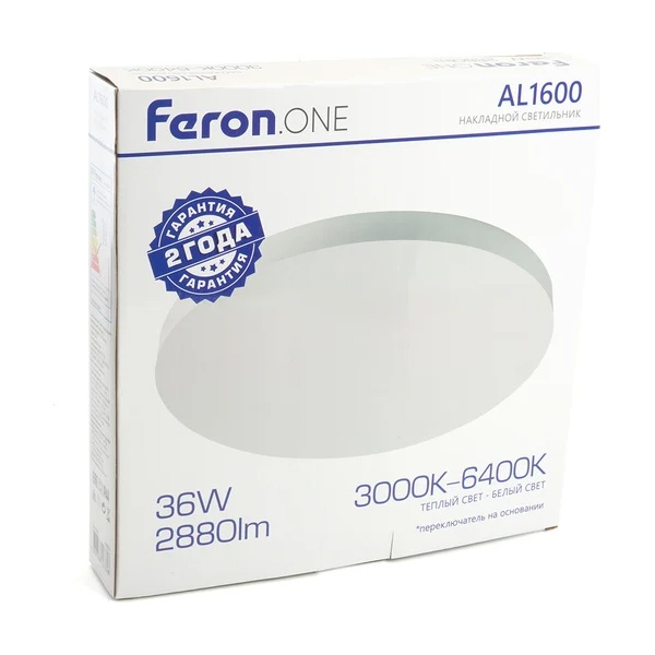 Светильник накладной светодиодный FERON AL1600 — современное потолочное осветительное устройство, предназначенное для равномерного и комфортного освещения жилых и коммерческих помещений. Оснащён удобным переключателем цветовой температуры в диапазоне 3000K–6400K, что позволяет выбирать тёплый, нейтральный или холодный свет в зависимости от задачи и атмосферы помещения.