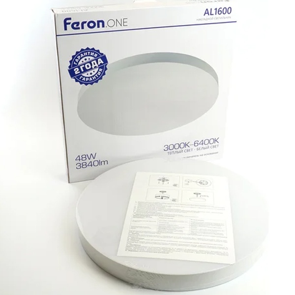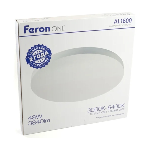 Светильник накладной светодиодный FERON AL1600 — современное потолочное осветительное устройство, предназначенное для равномерного и комфортного освещения жилых и коммерческих помещений. Оснащён удобным переключателем цветовой температуры в диапазоне 3000K–6400K, что позволяет выбирать тёплый, нейтральный или холодный свет в зависимости от задачи и атмосферы помещения.