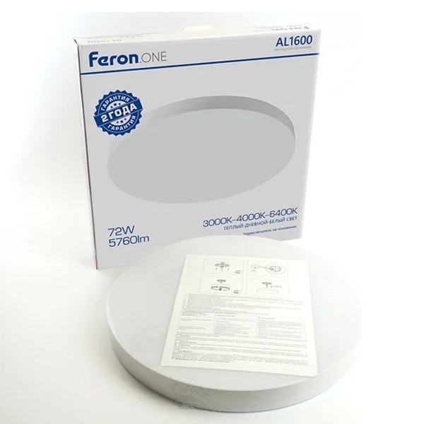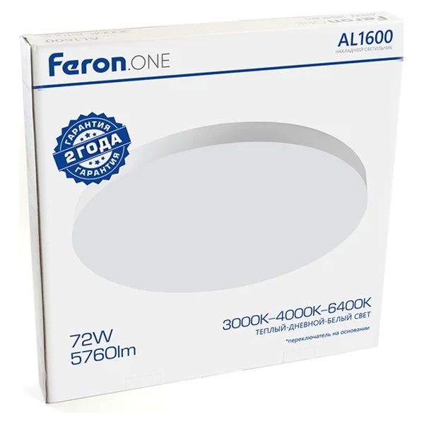 Светильник накладной светодиодный FERON AL1600 — современное потолочное осветительное устройство, предназначенное для равномерного и комфортного освещения жилых и коммерческих помещений. Оснащён удобным переключателем цветовой температуры в диапазоне 3000K–6400K, что позволяет выбирать тёплый, нейтральный или холодный свет в зависимости от задачи и атмосферы помещения.