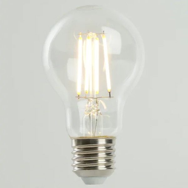 Филаментная лампочка Ферон с нитевидными светодиодами, мощностью 6 Ватт, с цоколем E27, теплый свет, прозрачная колба 48889