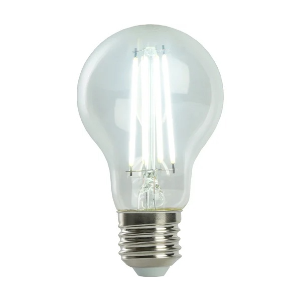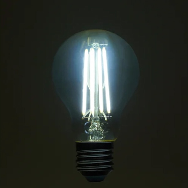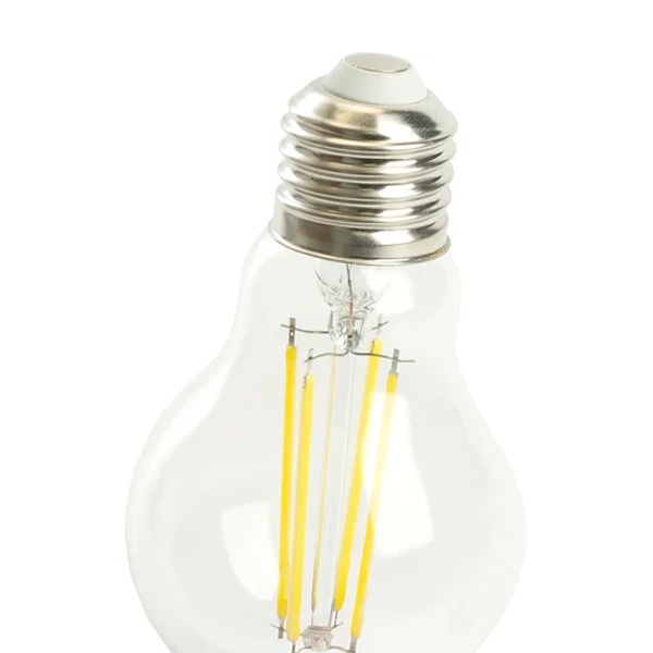 Филаментная лампочка Ферон с нитевидными светодиодами, мощностью 8 Ватт, с цоколем E27, холодный дневной свет, прозрачная колба 48894