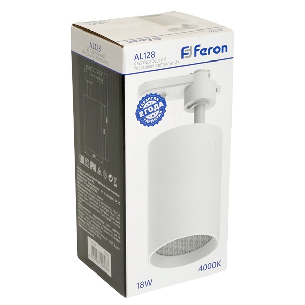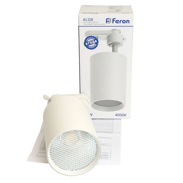 Белый трековый однофазный светодиодный светильник AL128 Ферон с антибликовой сеткой, мощность 18Вт, нейтральный белый свет с углом рассеивания 35 градусов 48918