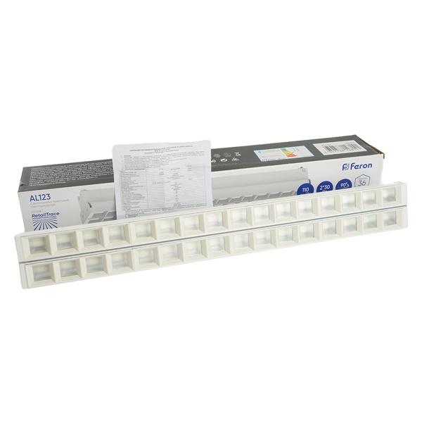 Белый трековый однофазный светодиодный светильник AL123 Ферон, мощность 2*30Вт, холодный дневной свет с углом рассеивания 60 градусов 48927