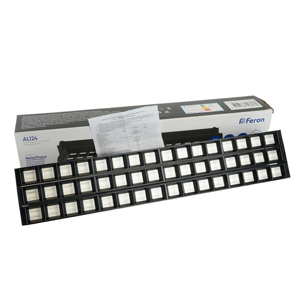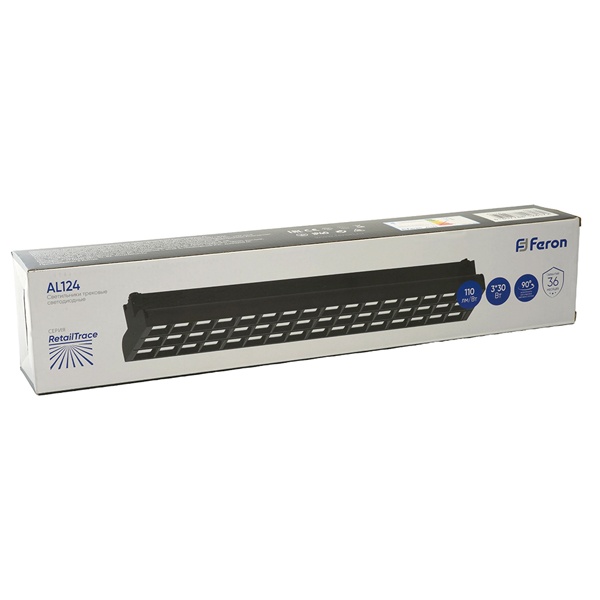 Черный трековый однофазный светодиодный светильник AL124 Ферон, мощность 3*30Вт, нейтральный белый свет с углом рассеивания 60 градусов 48930