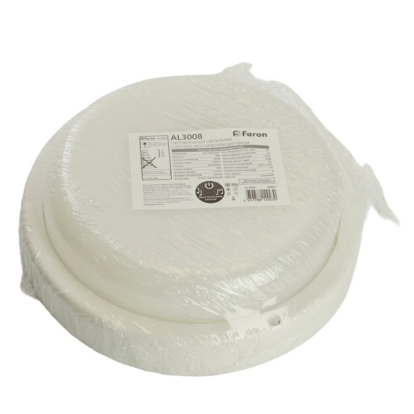 Круглый пылевлагозащищённый накладной LED светильник мощностью 18 Ватт, нейтральный белый свет, c оптико-акустическим датчиком, Ферон 48997