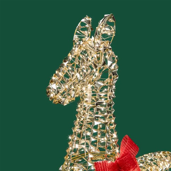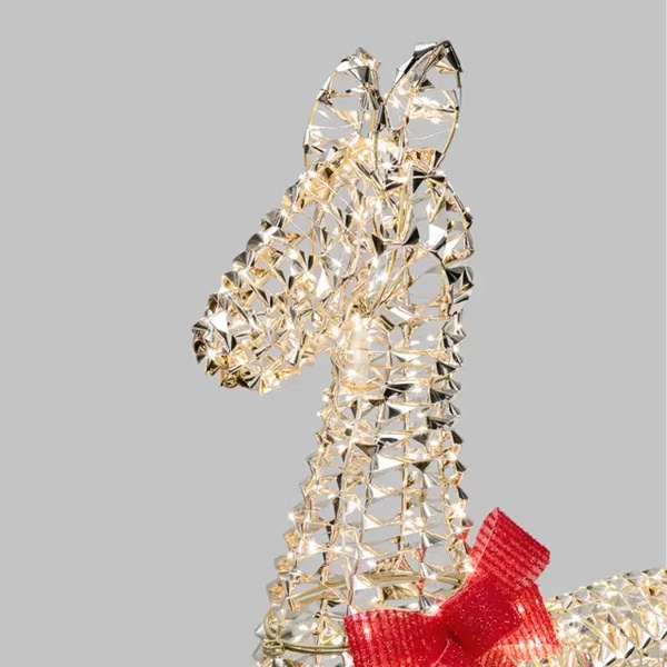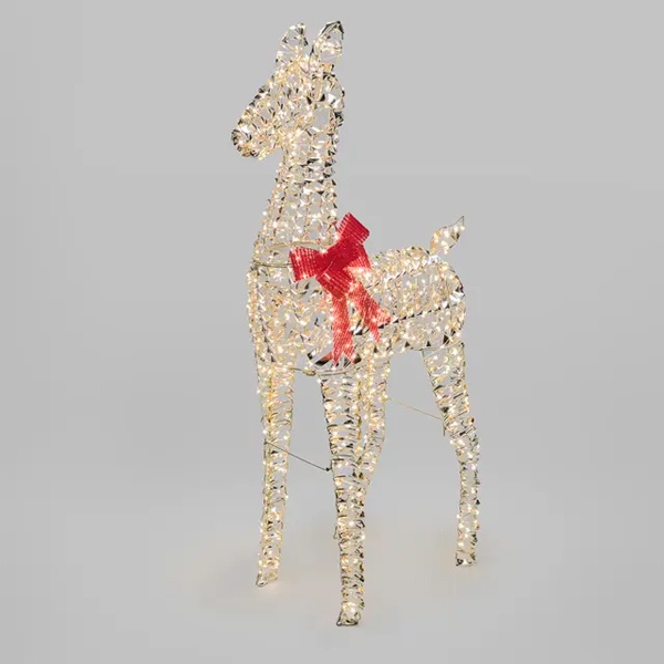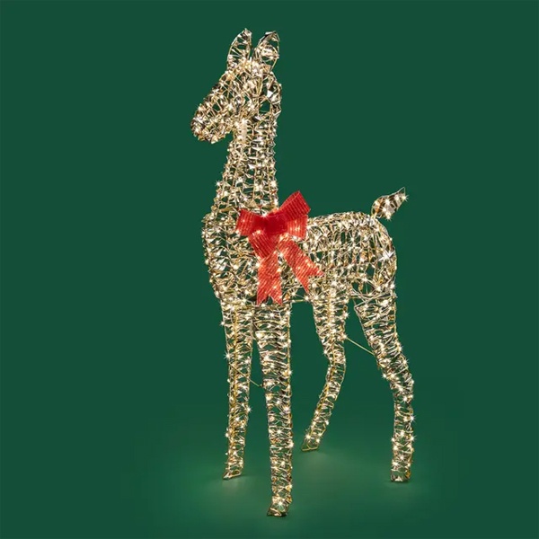 Металлическая 3D-фигура в виде Олененка — это стильное и выразительное украшение для праздничного декора, которое станет ярким акцентом в торговых центрах, витринах, у входа в кафе или рестораны. Мягкое свечение огоньков придаёт композиции особое очарование: тёплый свет создаёт атмосферу уюта и превращает любое пространство в сказочный зимний уголок. Надёжный металлический каркас обеспечивает устойчивость конструкции, а трансформатор с встроенным таймером автоматически управляет подсветкой по заданному графику. В коллекции также есть фигуры Оленя и Оленихи, которые вместе создают эффектную праздничную семейную сцену.