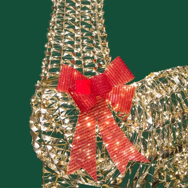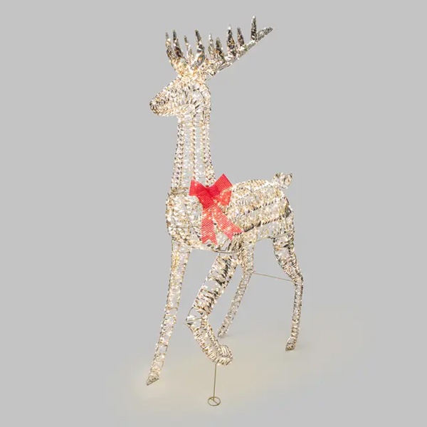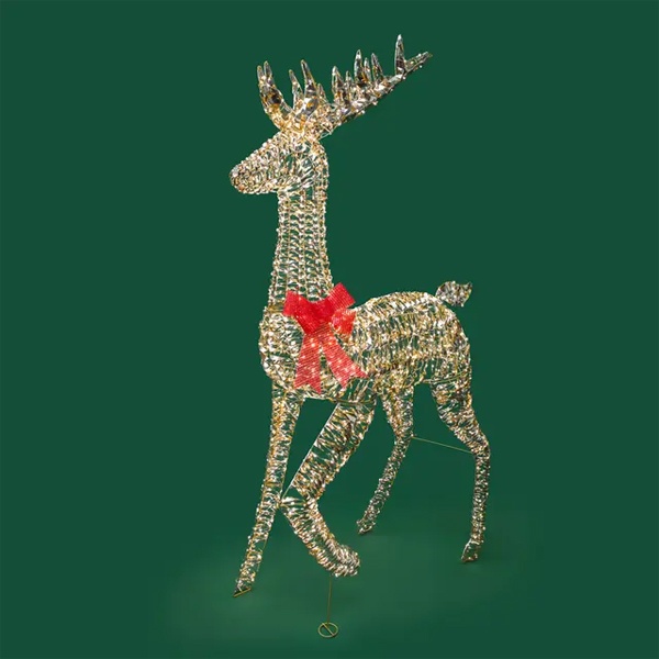 Металлическая 3D-фигура в виде оленя — элегантный и выразительный акцент праздничного декора, идеально подходящий для украшения торговых центров, витрин, входных зон, а также пространств перед кафе и ресторанами.Мягкое сияние огоньков придает фигуре особое волшебство — теплый свет создает уютную атмосферу и превращает любое пространство в сказочный зимний уголок. Прочный металлический каркас обеспечивает надежность и устойчивость конструкции, а встроенный трансформатор с таймером автоматически управляет подсветкой по заданному графику.