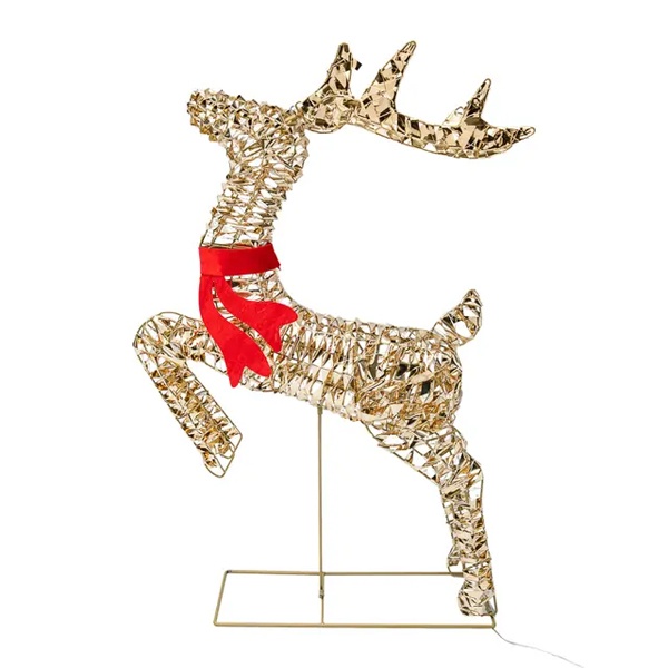 Металлическая 3D-фигура в виде оленя — элегантный и выразительный акцент праздничного декора, идеально подходящий для украшения торговых центров, витрин, входных зон, а также пространств перед кафе и ресторанами.Мягкое сияние огоньков придает фигуре особое волшебство — теплый свет создает уютную атмосферу и превращает любое пространство в сказочный зимний уголок. Прочный металлический каркас обеспечивает надежность и устойчивость конструкции, а встроенный трансформатор с таймером автоматически управляет подсветкой по заданному графику.