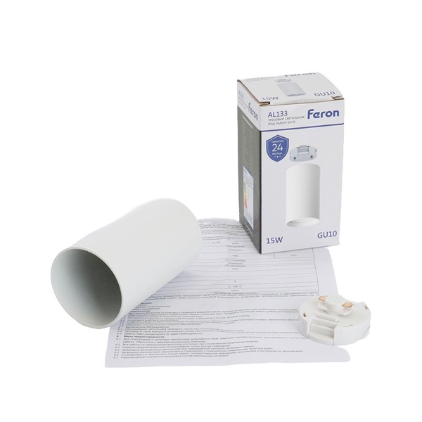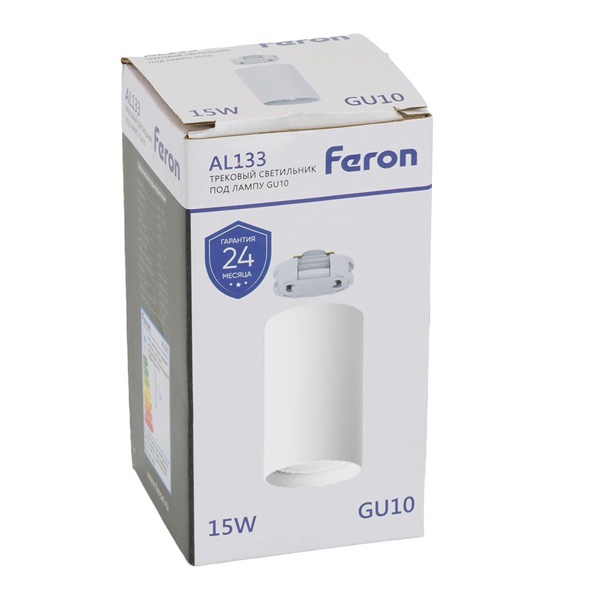 Трековый светильник Ферон AL133 на однофазный шинопровод, для ламп MR16 с цоколем GU10, максимальной мощностью 15 Вт, белый цвет 51120