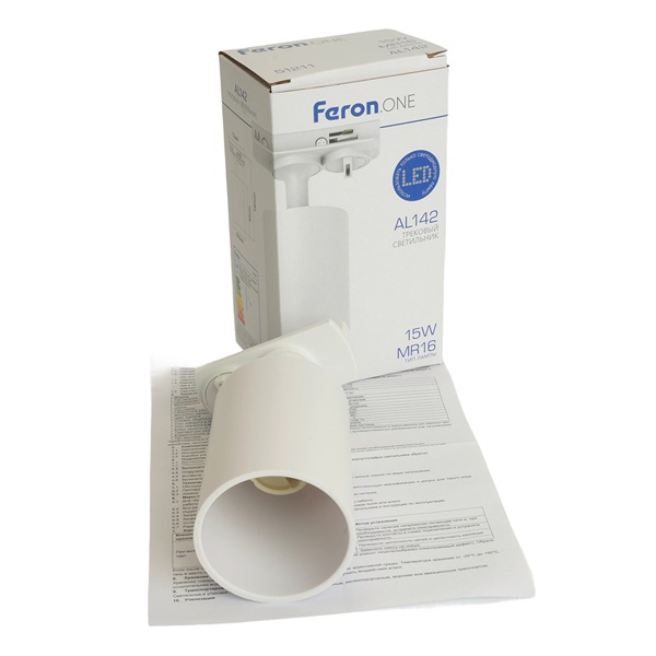 Трековый светильник Ферон AL142, для ламп MR16 с цоколем GU10, максимальной мощностью 15 Вт, белый цвет 51211