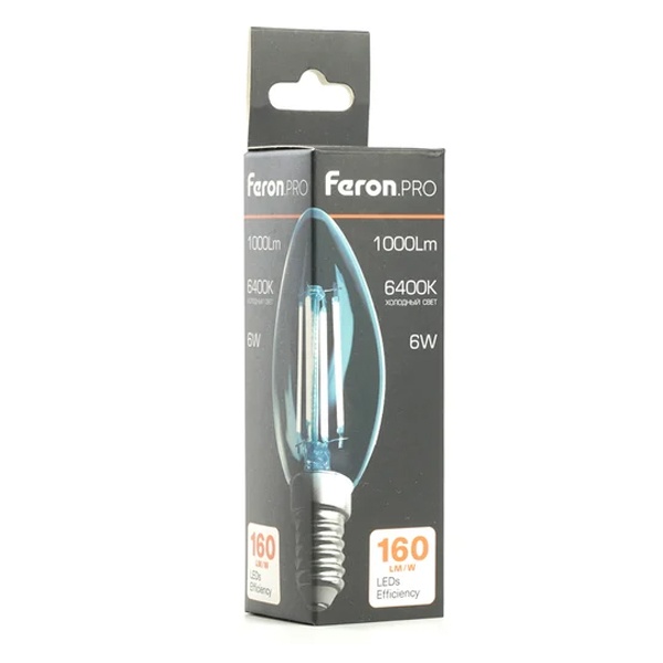 Энергосберегающая LED лампочка свеча с нитевидными светодиодами, мощностью 6 Ватт, с цоколем E14, холодный дневной свет, матовая колба 51246