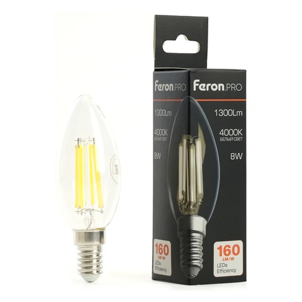 Энергосберегающая LED лампочка свеча с нитевидными светодиодами, мощностью 8 Ватт, с цоколем E14, нейтральный белый свет, матовая колба 51248