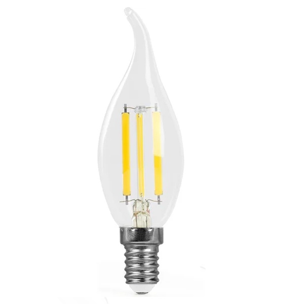 Филаментная лампочка свеча на ветру Ферон с нитевидными светодиодами, мощностью 8 Ватт, с цоколем E14, нейтральный белый свет, прозрачная колба 51266