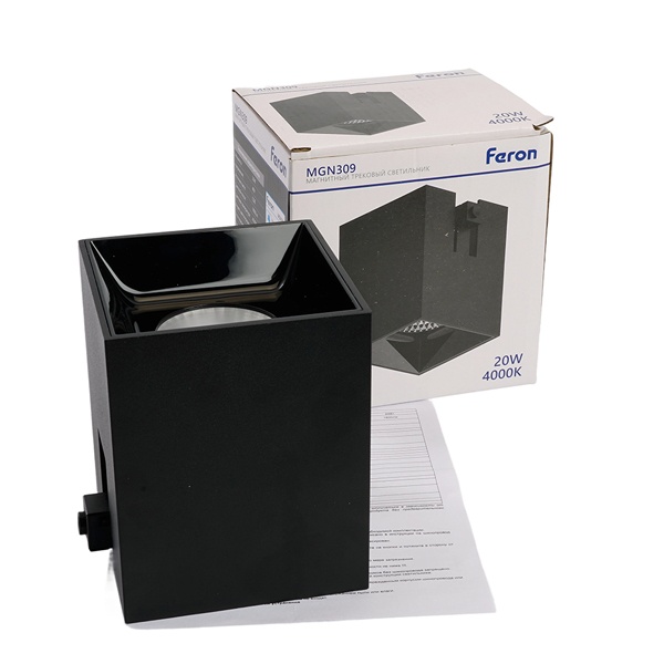 Черный трековый LED светильник 48В Ферон мощностью 20Вт для накладного магнитного шинопровода, нейтральный белый свет с углом рассеивания 35 градусов 51592