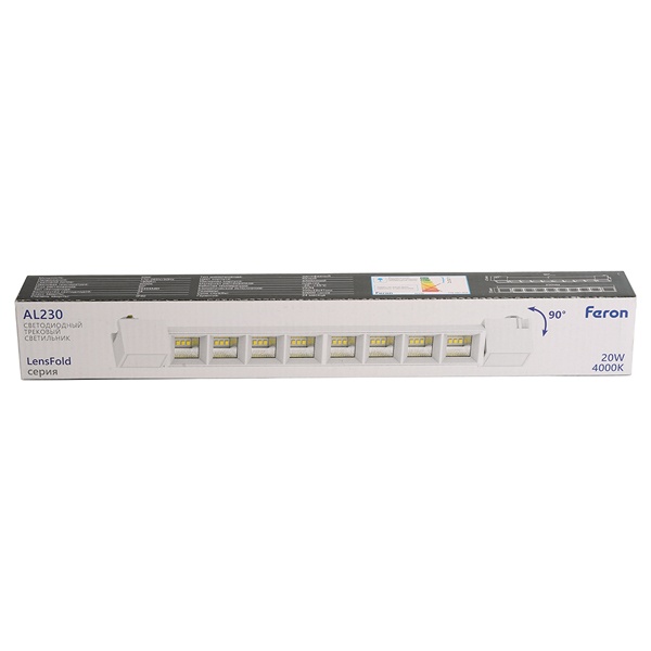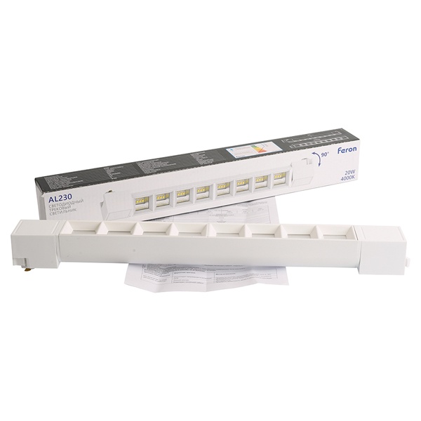 Трековый светодиодный светильник Feron AL230 представляет собой современный линейный светильник, предназначенный для установки на трековую систему освещения. Он оснащён высококачественными линзами, обеспечивающими фокусировку светового потока с углом раскрытия 60°, что позволяет создавать направленное и акцентное освещение.