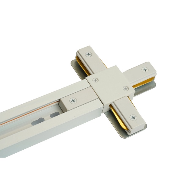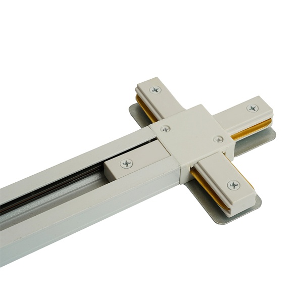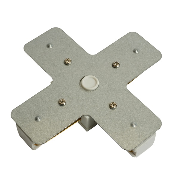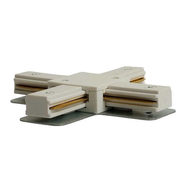 Х-образный однофазный коннектор предназначен для соединения четырех участков шинопровода под прямым углом, образуя перекрестное соединение в единой электрической цепи. Он служит элементом крепления и стыковки, с помощью которого осуществляется монтаж шинопровода по периметру помещения, а также создание разветвлённых схем освещения любой конфигурации.