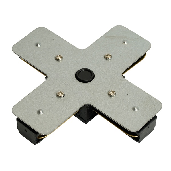 Х-образный однофазный коннектор предназначен для соединения четырех участков шинопровода под прямым углом, образуя перекрестное соединение в единой электрической цепи. Он служит элементом крепления и стыковки, с помощью которого осуществляется монтаж шинопровода по периметру помещения, а также создание разветвлённых схем освещения любой конфигурации.