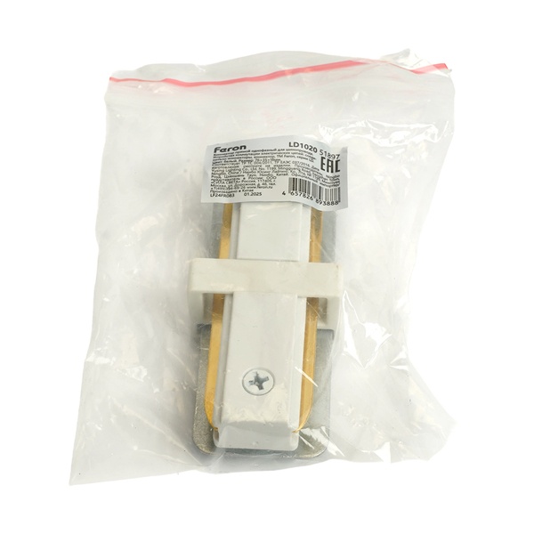 Соединитель LD1020 для однофазного шинопровода Ферон CAB1007, цвет белый 51897