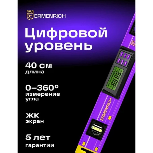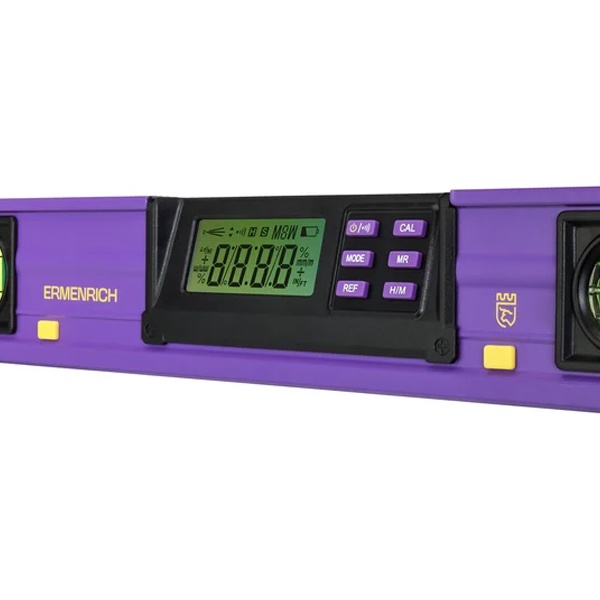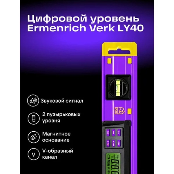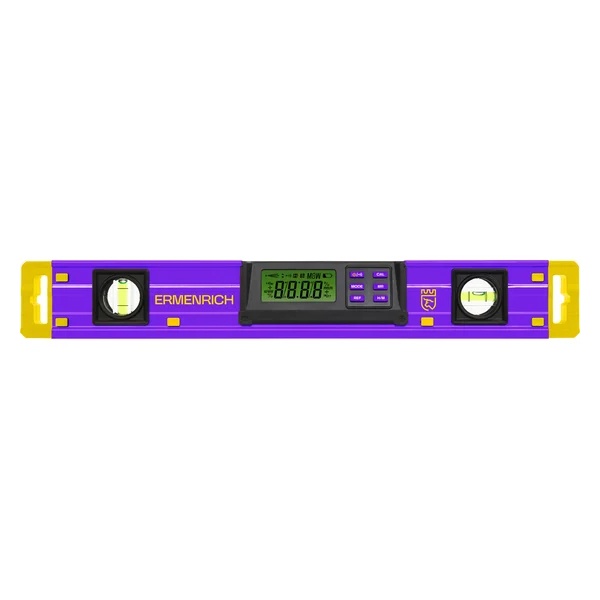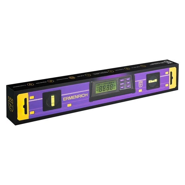 Цифровой уровень Ermenrich Verk LY40 выполнен в классическом прямоугольном алюминиевом корпусе и оснащён пузырьковыми ампулами для традиционной проверки горизонтали и вертикали. Это высокоточное и удобное в работе устройство станет надёжным помощником при монтаже, ремонте, строительных работах, производстве и любых задачах, где требуется точное выравнивание элементов. Благодаря сочетанию привычной конструкции и современных цифровых технологий уровень значительно упрощает рабочий процесс и повышает его эффективность.