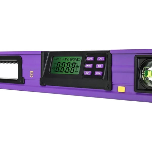 Прибор измеряет углы в полном диапазоне 4х90°, охватывая всю окружность и фиксируя значения от 0° до 90° в каждом из четырёх секторов. Пользователь может выполнить ручную калибровку или установить измерение на нулевую отметку для проведения относительных замеров. Все данные отображаются на компактном и хорошо читаемом ЖК-экране. Результаты можно выводить в наиболее удобных единицах - градусах, процентах, миллиметрах на метр, дюймах на фут и других. При необходимости значения легко зафиксировать, что особенно полезно, если уровень приходится поворачивать или перемещать во время работы.