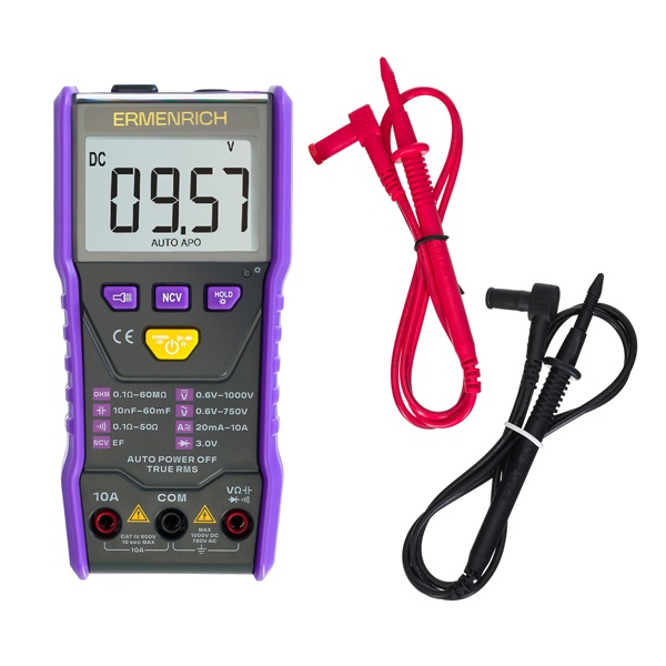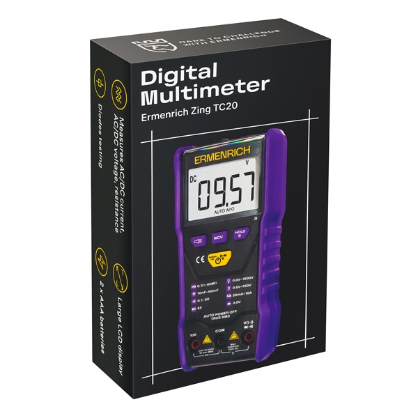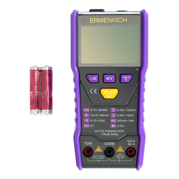 Цифровой мультиметр Ermenrich Zing TC20 — точный универсальный прибор, объединяющий функции вольтметра, амперметра, омметра и фарадометра. Он позволяет с высокой точностью измерять напряжение, силу тока и сопротивление в цепях постоянного и переменного тока, а также определять емкость конденсаторов. Амперметр и вольтметр работают по технологии True RMS, что обеспечивает максимально точные результаты.