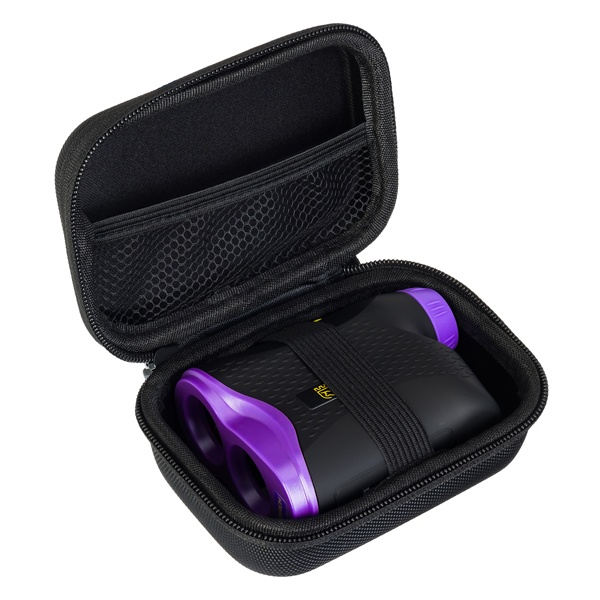 Дальномер поддерживает два режима работы: одиночный замер и непрерывное сканирование, что особенно удобно при отслеживании движущихся целей. Функция «захват флагштока» позволяет определять расстояние до мелких объектов, плохо заметных на общем фоне — например, флажков на спортивном поле, опор линий электропередач или столбов. При фиксации цели устройство сигнализирует вибрацией корпуса. Для повышения точности предусмотрена компенсация наклона, которая полезна, например, при игре в гольф. При необходимости дальномер можно установить на стандартный штатив.
