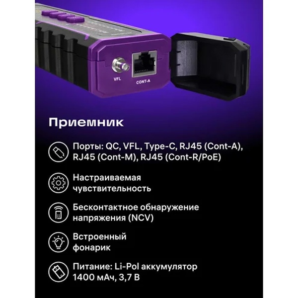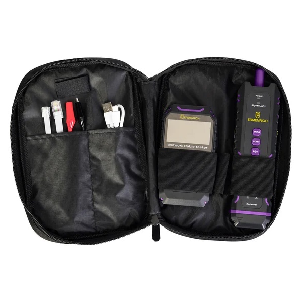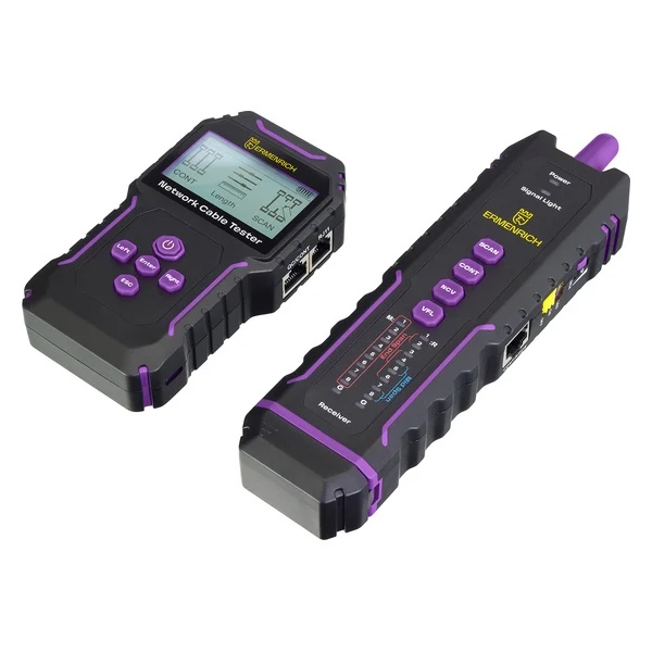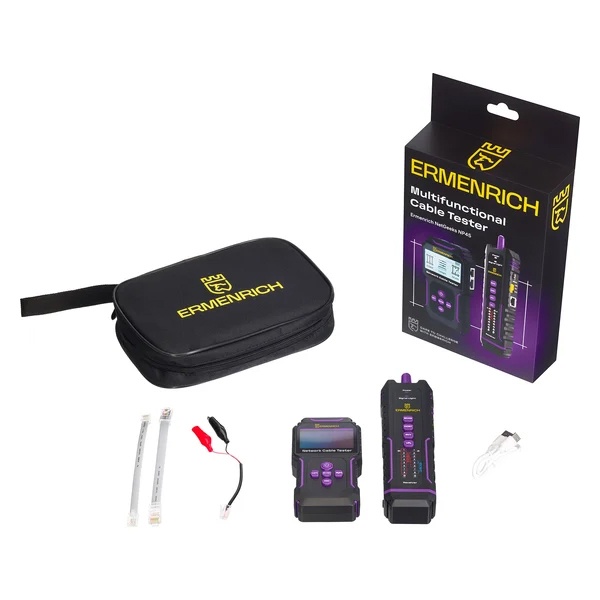 Ermenrich NetGeeks NP45 — это универсальный прибор для комплексной диагностики сетевой инфраструктуры, предназначенный для профессионального тестирования и обслуживания кабельных линий передачи данных. Он сочетает в себе широкий набор функций, позволяя с высокой точностью выявлять неисправности, определять характеристики кабеля и проверять сетевое оборудование.