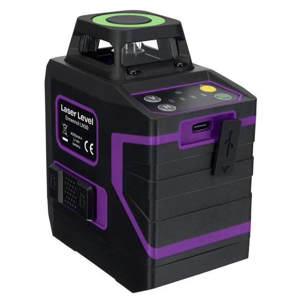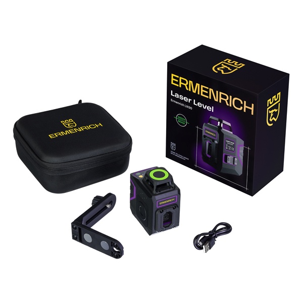 Лазерный уровень Ermenrich PLUS LN30 — надёжный помощник для строительных и монтажных работ. Он проецирует 5 зелёных лазерных линий: четыре по горизонтали и одну вертикальную. Благодаря углу развертки 360° устройство отлично справляется с разметкой по периметру, упрощая задачи по выравниванию и установке на любой стадии строительства или ремонта.
