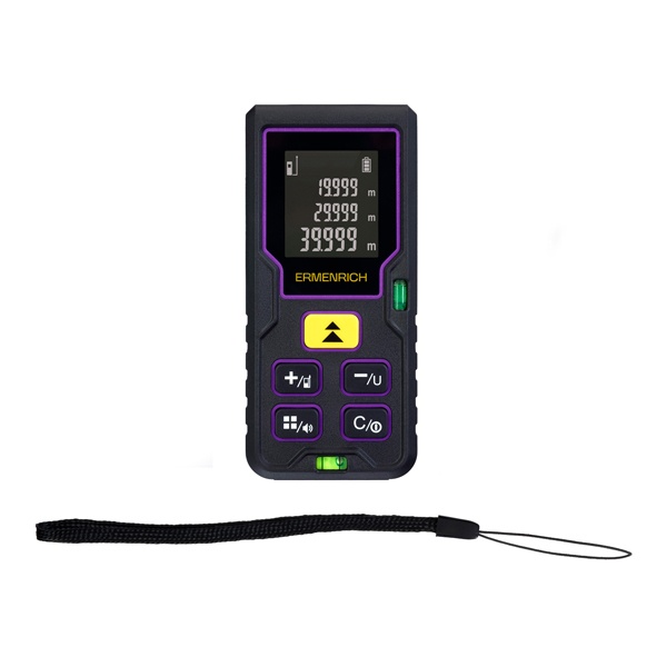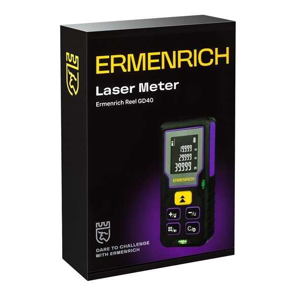 Лазерная рулетка Ermenrich Reel PLUS GD40 предназначена для измерения расстояний от 5 см до 40 метров, что делает её идеальным решением для задач, не требующих замеров больших дистанций за один раз. Помимо прямых линейных измерений, устройство позволяет рассчитывать площадь и объём, что удобно при монтаже, ремонте, строительстве и других подобных работах.