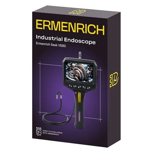 Видеоэндоскоп Ermenrich Seek VE80 - многофункциональный профессиональный инструмент, оснащённый поворотной камерой диаметром всего 6,2 мм с углом обзора 90°. Благодаря компактным габаритам и гибкому трёхметровому зонду эндоскоп позволяет легко исследовать труднодоступные полости и коммуникации: электропроводку, вентиляционные каналы, сантехнические трубы, строительные шахты и скрытые полости в стенах. Прибор подходит для контроля качества ремонтных и строительных работ, диагностики состояния помещений, поиска источников сырости, плесени, течей и зон промерзания.
