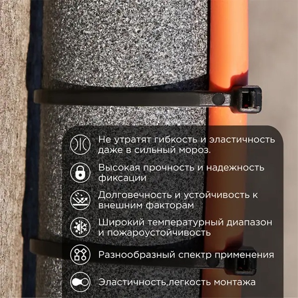 Морозостойкая нейлоновая стяжка REXANT — это универсальное крепежное решение, идеально подходящее для использования при экстремально низких температурах до -60°C. Она предназначена для надежного закрепления кабелей и проводов на улице в зимний период, а также для фиксации различных строительных материалов. Кроме того, стяжка отлично справляется с креплением гирлянд, фонарей, акриловых фигурок и других праздничных украшений. Благодаря высокой морозостойкости, стяжка сохраняет свою прочность даже в сильные холода, обеспечивая долговечную и надежную фиксацию вне зависимости от погодных условий.