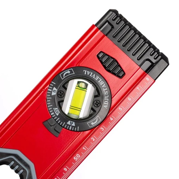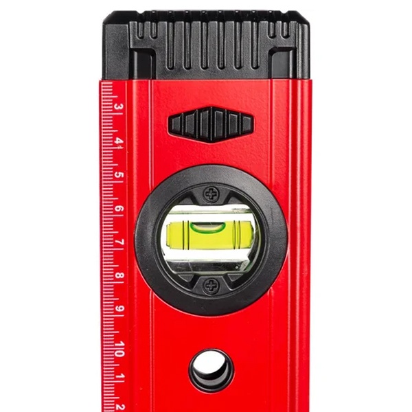 Оснащён тремя высокоточными измерительными глазками (ампулами), позволяющими быстро и удобно определять отклонения по горизонтали, вертикали и под углом 45°. Встроенные магниты обеспечивают надёжную фиксацию уровня на металлических поверхностях, освобождая руки для работы.